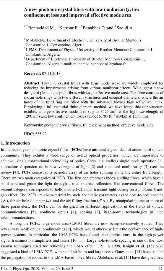 Haxha S and Ademgil H, 2008. Novel design of photonic crystal fibres with