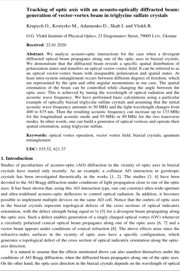 Krupych O, Vasylkiv Yu, Kryvyy T, Skab I and Vlokh R, 2017. Topological