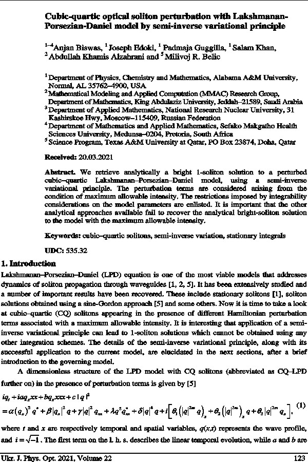 1−4Anjan Biswas, 1Joseph Edoki, 1Padmaja