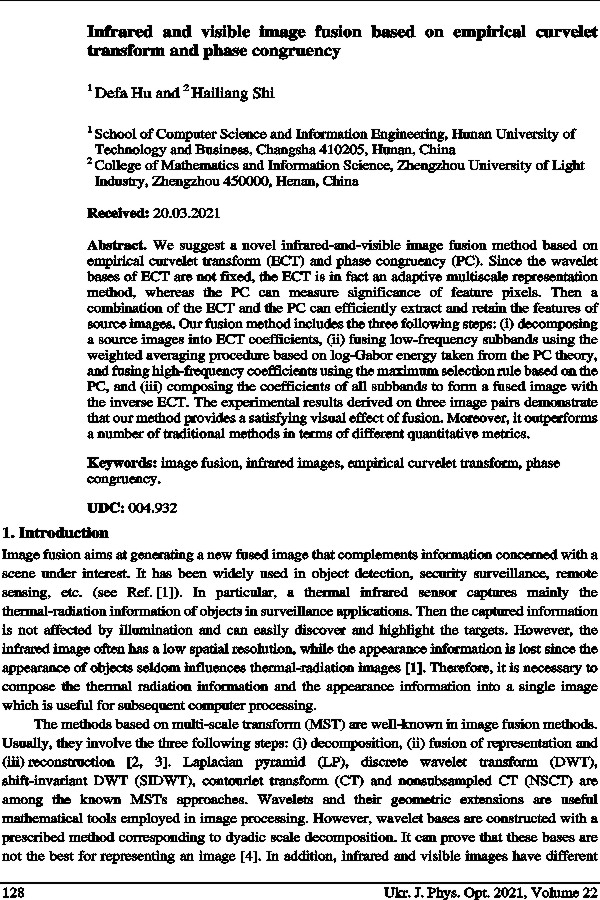 Abstract. We suggest a novel infrared-and-visible image fusion