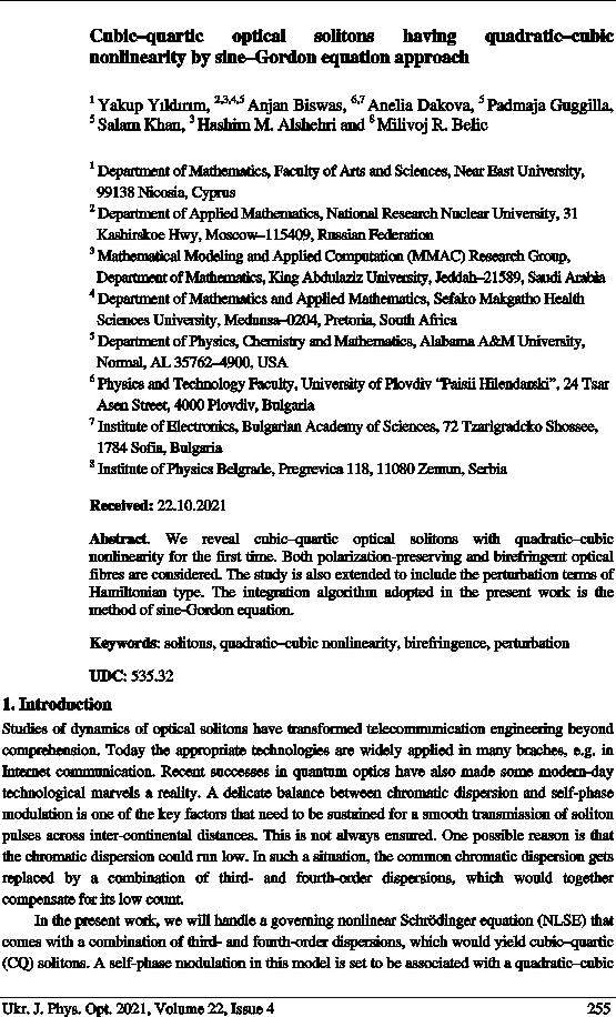 Yildirim Y, Biswas A, Kara A H, Ekici M, Alzahrani A K and Belic M R, 2021.